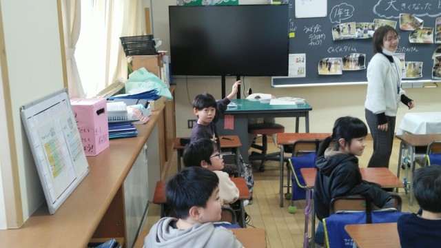 2年生の5時間目は、生活科の学習でした。「大きくなった自分」の学習で、産まれた頃の自分について話し合っていました。