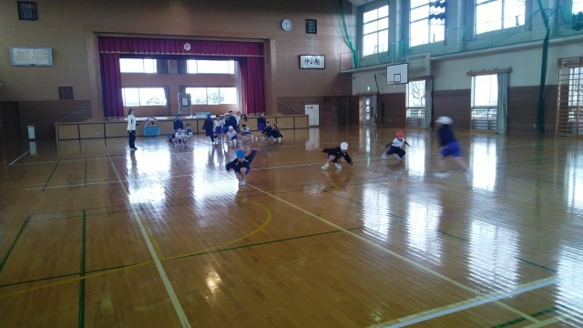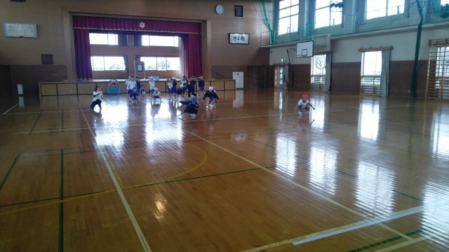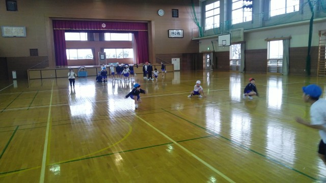 2年生の4時間目は、体育科の学習でした。体育館で団ごとに走るレースをしていました。