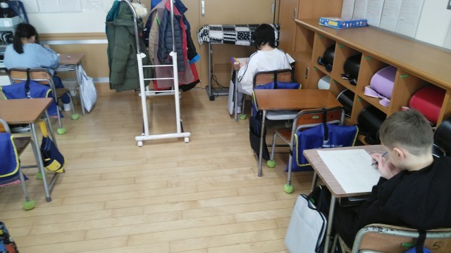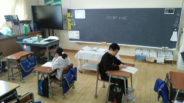 2年生は、3時間目に計算のチャレンジテストをしていました。