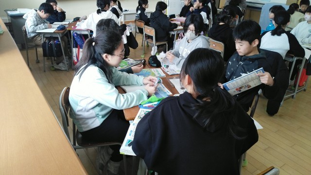 5年生の3時間目は、社会科の学習でした。コンビニエンスストアーと情報がどう結び付いているのかを調べていました。