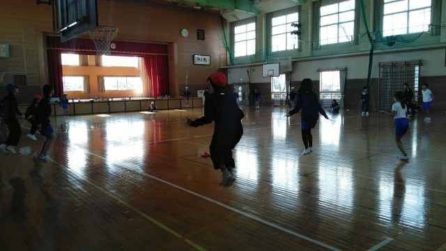 6年生の5時間目は、体育科の学習でした。体育館で縄跳びをしていました。二重とびをしていました。