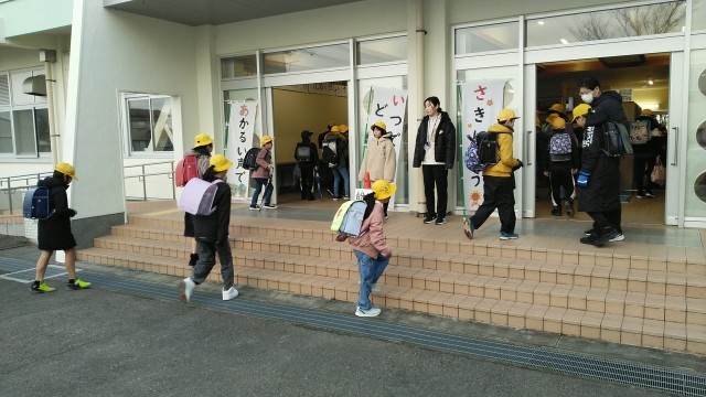1月20日(月) 今朝の児童玄関