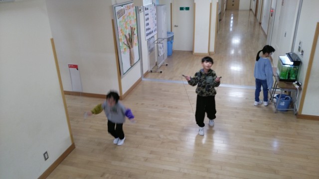 縄跳びを頑張っていました。