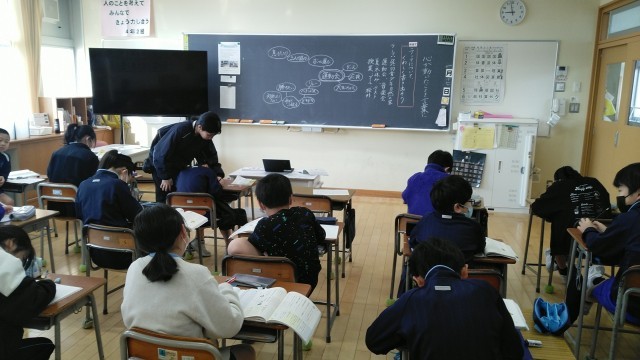 4年2組の1時間目は、国語科の学習でした。「心が動いたことを言葉に」という学習で、心が動いたことを書いていました。