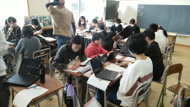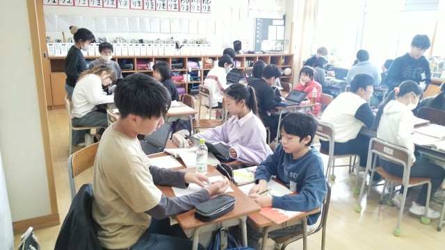 6年生の1時間目は、国語科の学習でした。パンフレットをつくっているみたいでした。