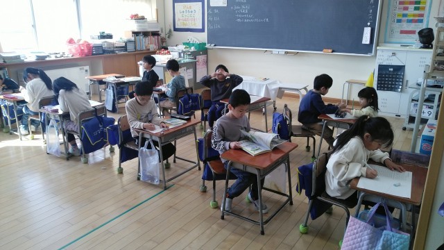 1月20日(月) 1年生 プリント→本読み 公開日 2025/01/20 更新日 2025/01/20 1年 1年生の3時間目は、算数科の学習でした。プリントをやって、終わった人から読書をしていました。