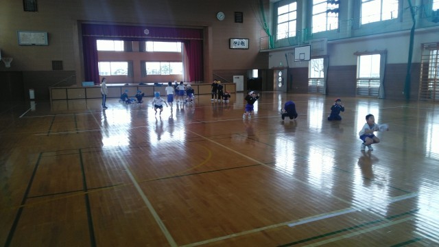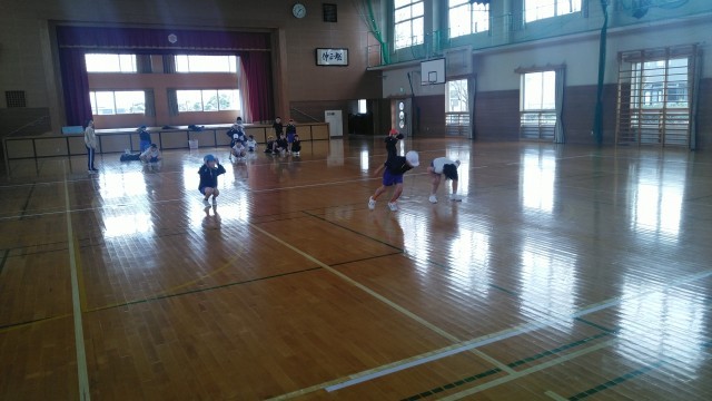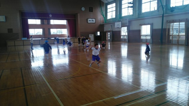 2年生の5時間目は、体育科の学習でした。体育館で団対抗のレースをしていました。