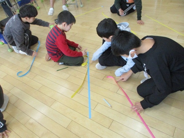 1月20日(月) 3年生 分数ものさしをつくろう 公開日 2025/01/20 更新日 2025/01/20 3年 算数科では、分数について学習しています。分母や分子が分かってきたところで、1mを七等分したものさしをつくりました。