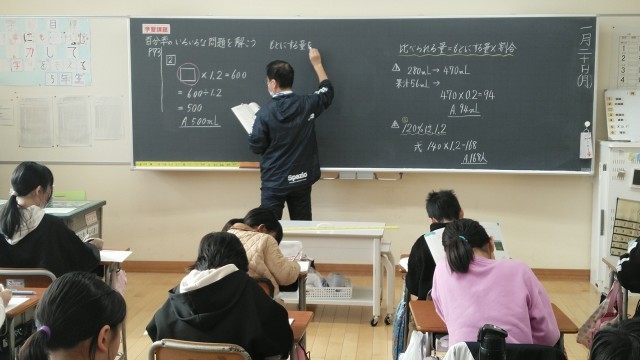 5年生の5時間目は、算数科の学習でした。百分率のいろいろな問題を考えていました。