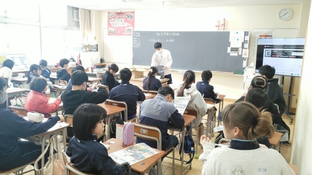 6年生の5時間目は、図画工作科の学習でした。これから一版多色版画に取り組んでいくそうで、今日は、材料を配られて版画の特徴の説明がありました。