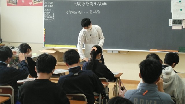 6年生の5時間目は、図画工作科の学習でした。これから一版多色版画に取り組んでいくそうで、今日は、材料を配られて版画の特徴の説明がありました。