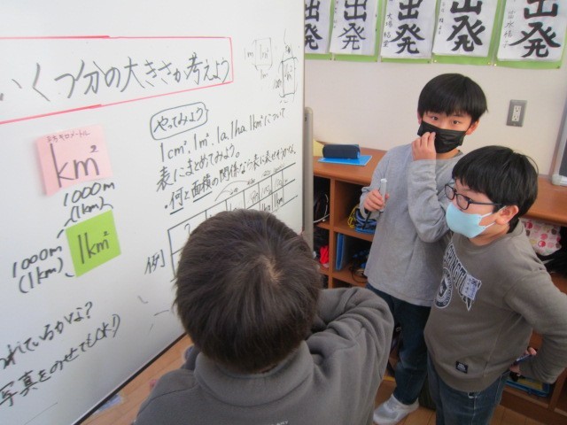 4年2組の算数科では、いくつかのミッションに取り組み、広さについて学習しています。