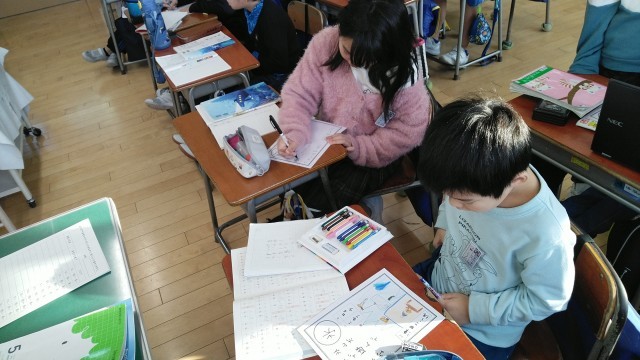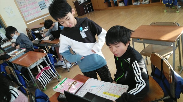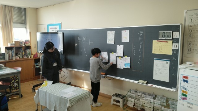 3年生の1時間目は、国語科の学習でした。「音訓かるた」をつくっていました。「遠」…「遠(えん)足で遠(とお)くに行けてうれしいな。」の様に、漢字の音読みと訓読みを入れたかるたをつくっていました。
