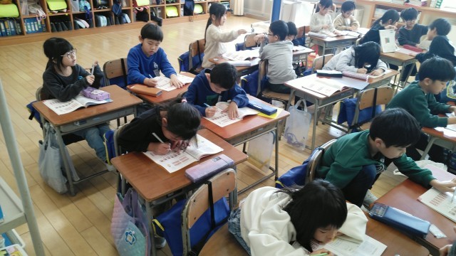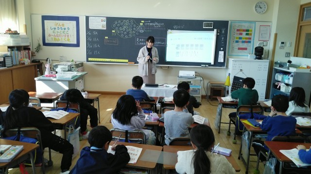 1年生の3時間目は、算数科の学習でした。工夫して数える方法について考えていました。