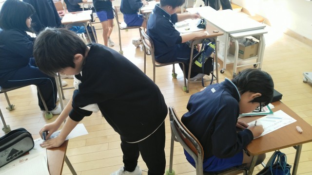 4年1組の3時間目は、国語科の学習でした。「言葉から連想したこと」を使って文章をつくり、短冊に書いていました。
