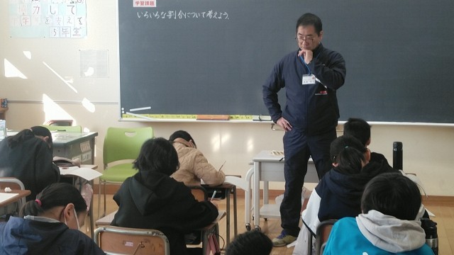 5年生の1時間目は、算数科の学習でした。いろいろな割合の問題を解いていました。