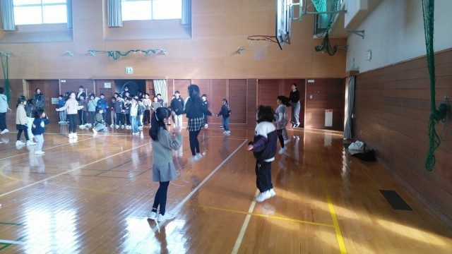 今日のぐんぐんタイムの女子の様子です。今日は、何回とべるか競っているみたいです。