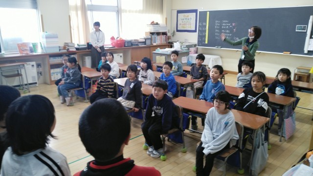 1年生教室に2年生がやってきて、「しあわせになあれ」という曲を聴かせてくれました。