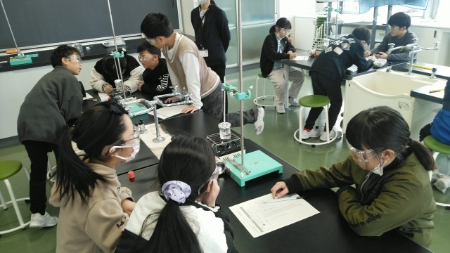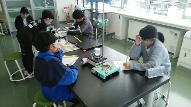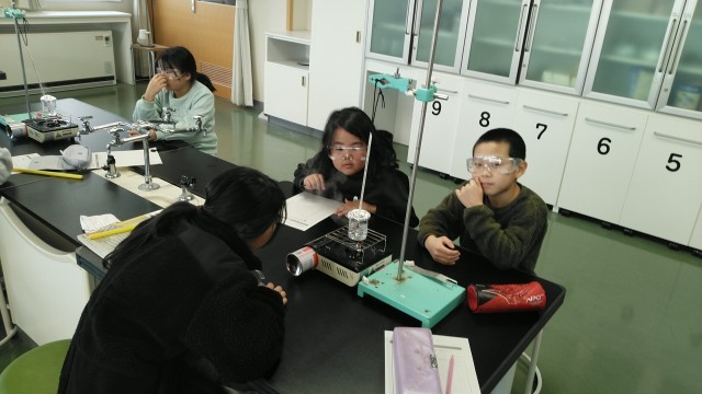 4年2組の5時間目は、理科の学習でした。理科室で、水の温まり方の実験をしていました。