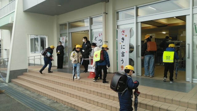 1月23日(木) 今朝の児童玄関