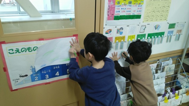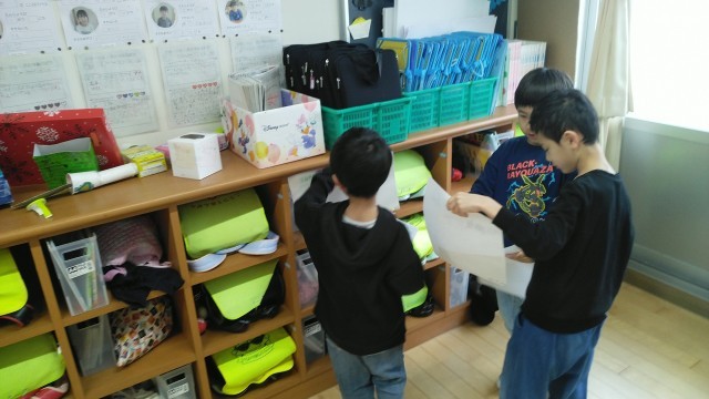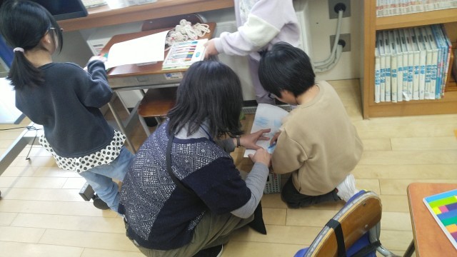 1年生の1時間目は、図画工作科の学習でした。「こすり出し」で教室のいろいろなところから「もよう」を探していました。