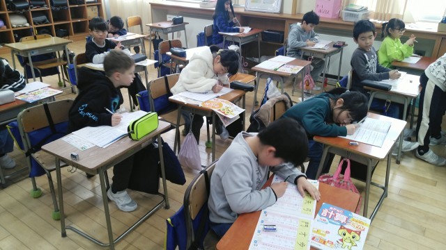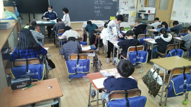 2年生の5時間目は、担任の先生が出張だったので、自習の時間でした。漢字ドリルと計算ドリルを進めていました。静かに自習できていました。