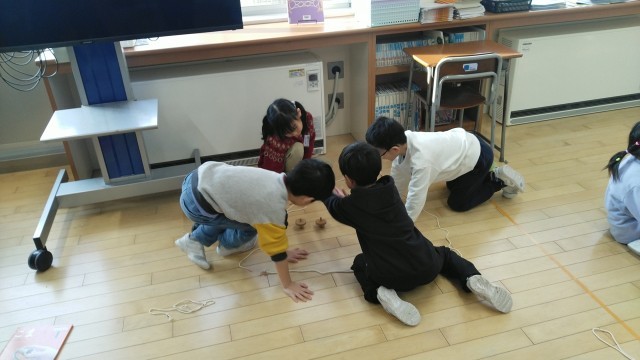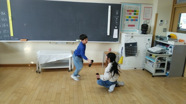 1年生の1時間目は、生活科の学習でした。「昔の遊び」を楽しんでいました。