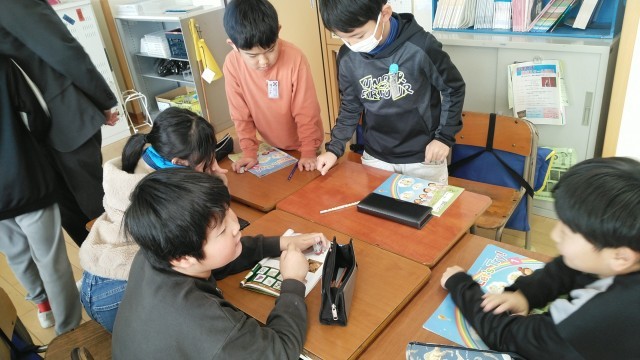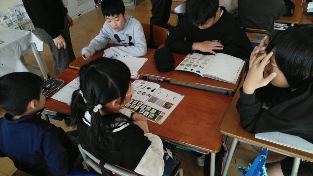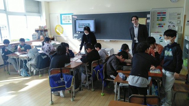 3年生の3時間目は、外国語活動の時間でした。クイズをしていました。ヒントを英語で伝えていました。