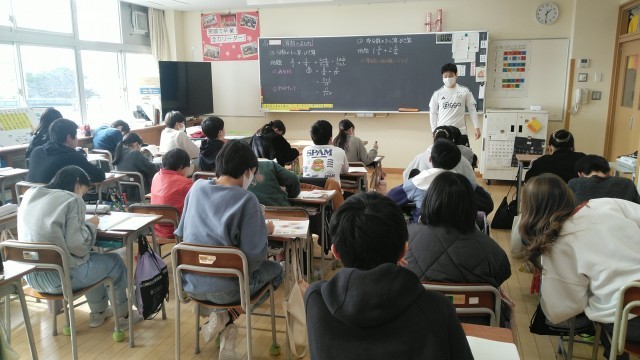 6年生の5時間目は、算数科の学習でした。帯分数+帯分数の計算の仕方について話し合っていました。