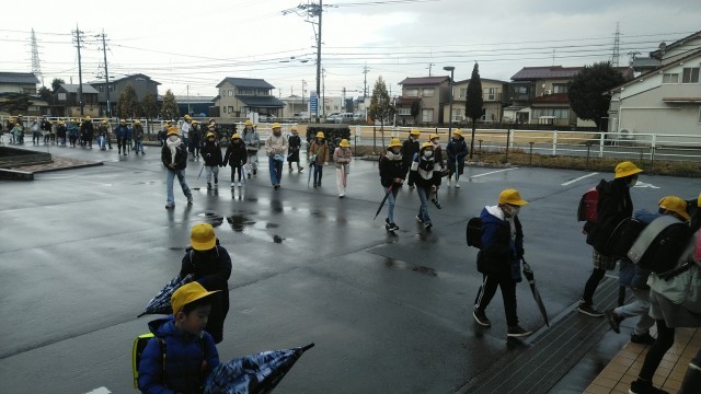 今朝の児童玄関の様子です。曇り空の朝です。子供たちは、元気に挨拶をしていました。