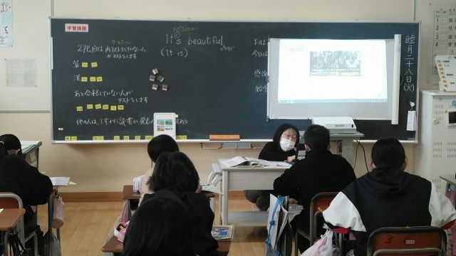 5年生の1時間目は、外国語科の学習でした。beautifulについて考えていました。