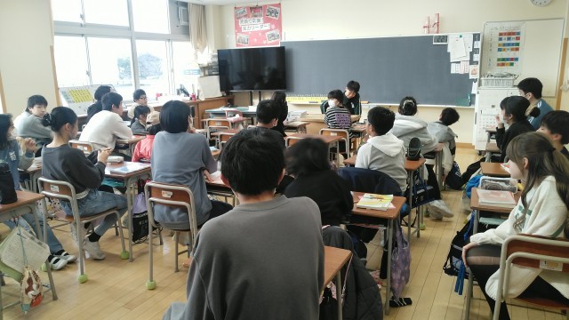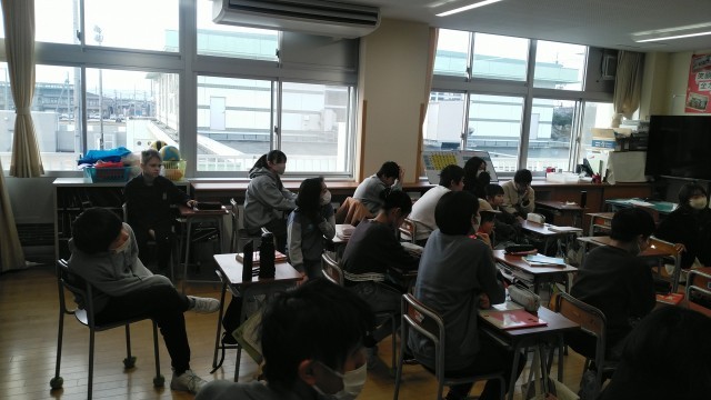 6年生は、1時間目にスピーチ?をしているみたいでした。前に出た人がみんなの質問に答えているみたいでした。