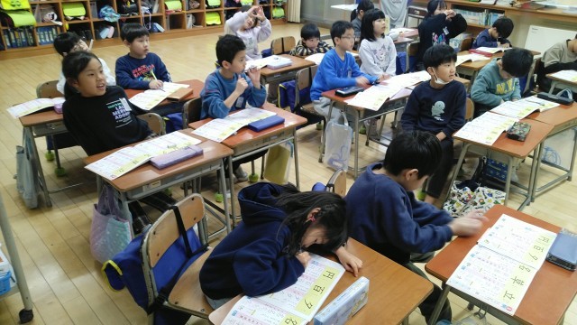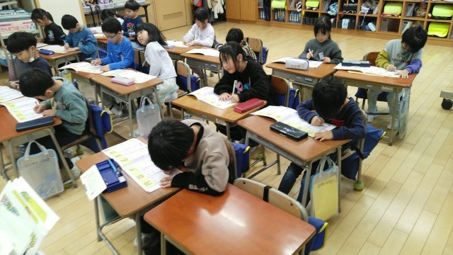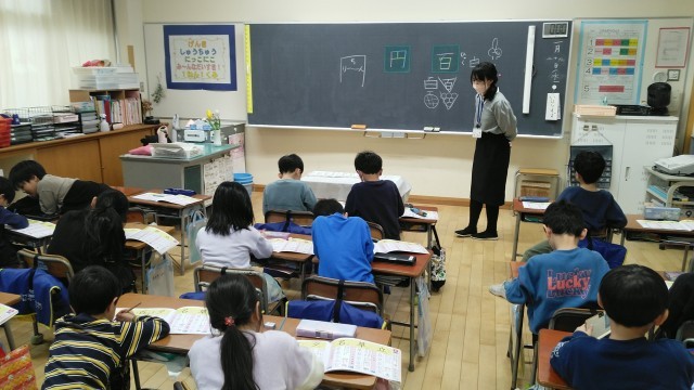 1年生の5時間目は、国語科の学習でした。「百」と「円」という漢字の練習をしていました。