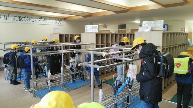 今朝の児童玄関の様子です。子供たちの元気な挨拶が飛び交っていました。