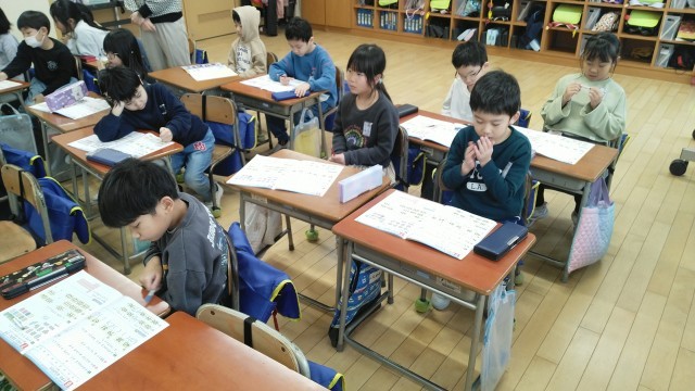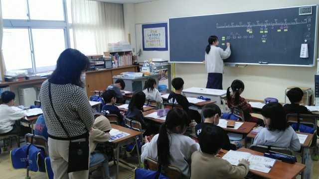 1年生の3時間目は、算数科の学習でした。10とびの数を数直線からよみとっていました。