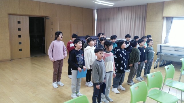 2年生の3時間目は、音楽科の学習でした。音楽室で「しあわせになあれ」の練習をしていました。