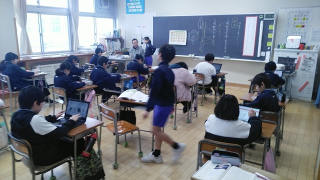 4年1組の3時間目は、国語科の学習でした。7つの風船から興味をもったことを選んで文章にしていました。