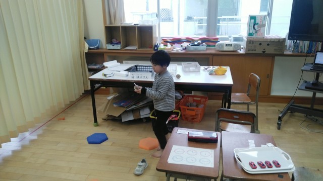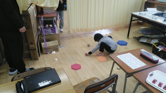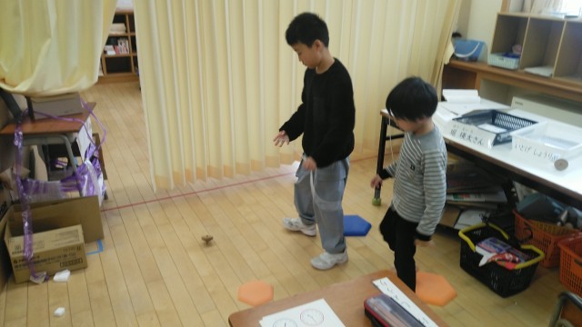 つばめ野級2組では、3時間目にこまをまわしていました。