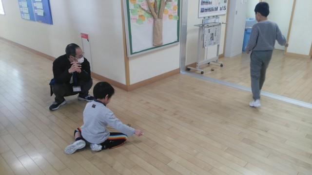 つばめ野級2組は、3時間目にこまをまわしていました。