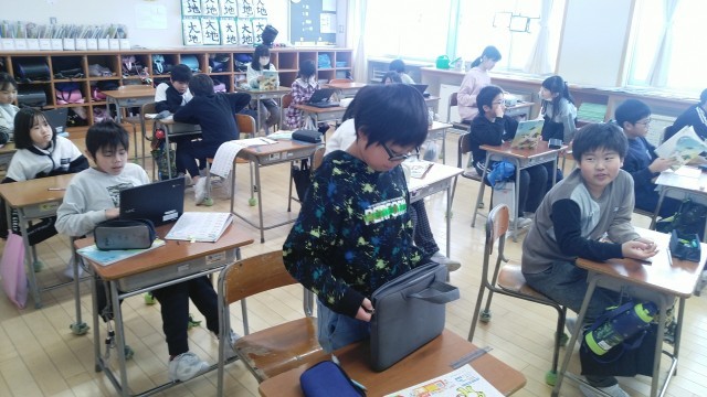 4年1組の5時間目は、国語科の学習でした。漢字の練習をしていました。