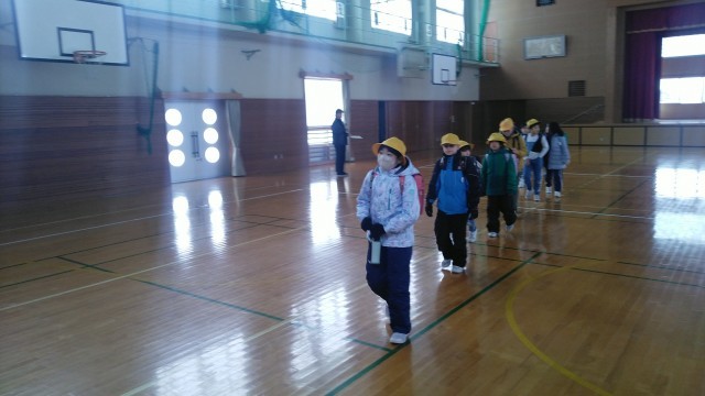 1~5年生が集まって集団下校をしました。地区担当の先生と一緒に一列に並んで帰っていきました。明日は、「学習成果発表会」です。元気に登校してきてくださいね。