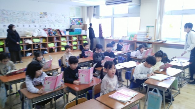 1年生教室では、発表の声だしをしていました。朝から保護者の方々もきてくださりありがとうございます。
