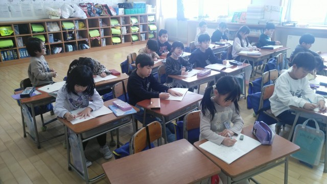 11時過ぎに1年生教室を覗くと連絡帳を書いていました。月曜日が振替休業日なので、今度学校に来るのは、水曜日です。