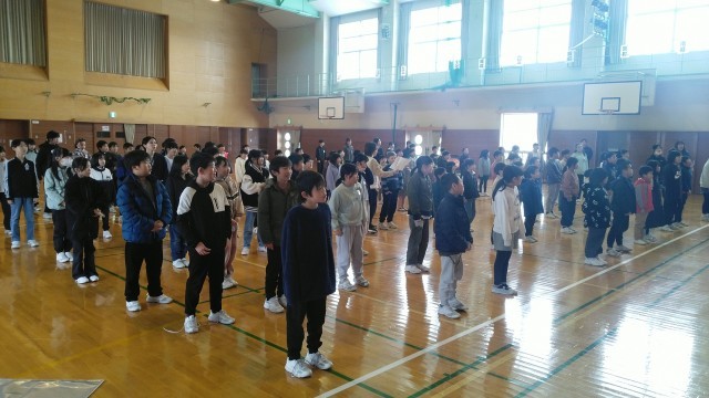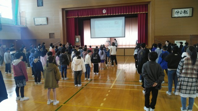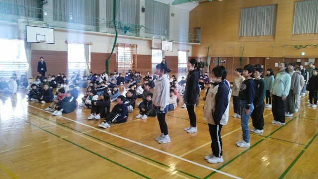 昼休みに1~5年生は、卒業式で歌う「大空がむかえる朝」という歌の練習をしました。6年生への思いを込めて練習しました。