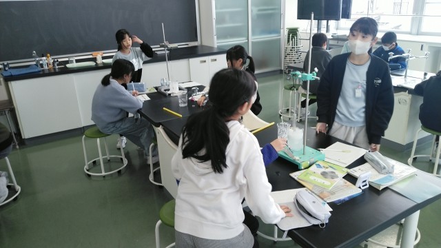 4年2組の5時間目は、理科の学習でした。水を0度以下にして、氷をつくる実験をしていました。試験管の周りに氷や雪を入れて塩も入れて温度を下げていました。
