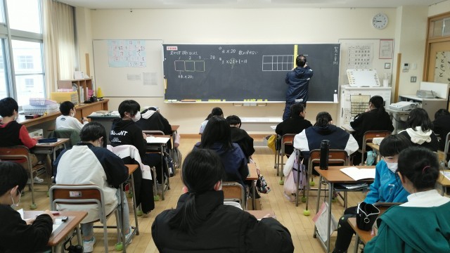 5年生の1時間目は、算数科の学習でした。4本の棒でできた四角形に棒を3本加えて四角形を増やしていくときの、四角形の数と棒の数のかわり方について考えていました。