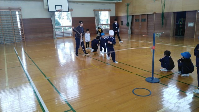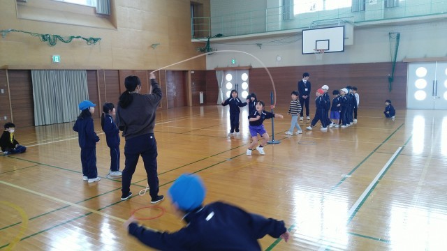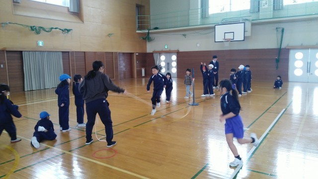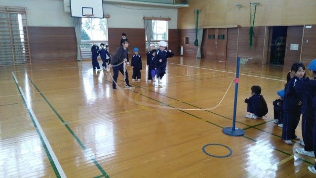 1年生の3時間目は、体育科の学習でした。体育館で長なわとびをしていました。