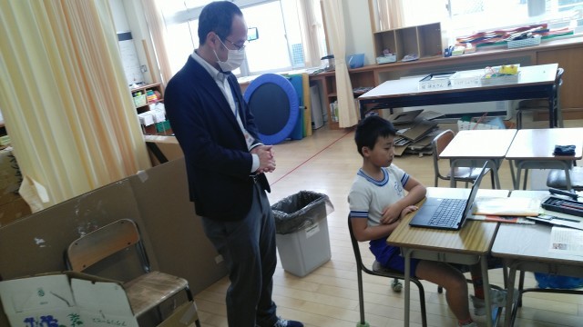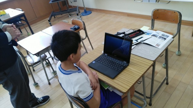 つばめ野級2組の4年生の3時間目は、社会科の学習でした。氷見市について調べていて、ちょうど「定置網」の動画を見ているところでした。