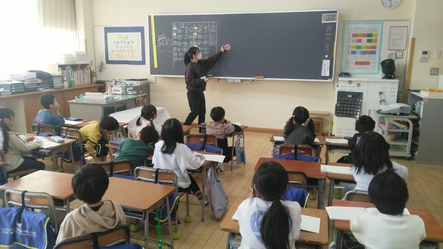 1年生の5時間目は、算数科の学習でした。「□は10が○こ」を確認しながら計算の問題を考えていました。