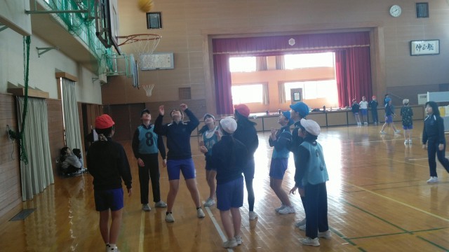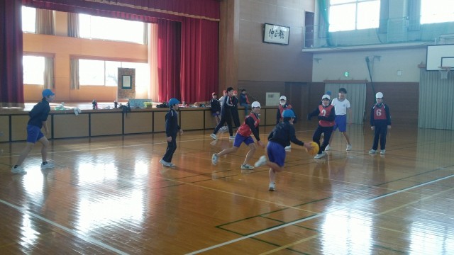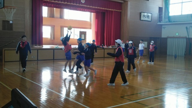6年生の5時間目は、体育科の学習でした。体育館でバスケットボールの試合をしていました。
